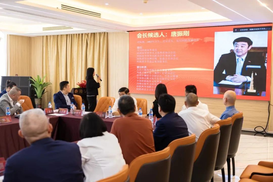章程通过后,会议正式进入选举流程,主持人公布了选举流程及监票团人员名单。本次选举大会的监票团6名成员分别为阿联酋云南商会暨同乡会会长布艳芳女士、德恒迪拜律师事务所于星洲律师、国际佛光会迪拜协会会长宣亚丽女士及侨商代表安小溪、张捷、赵君妍。根据选举流程,首先由阿联酋云南商会暨同乡会会长布艳芳按照章程代表筹委会推荐首届会长人选即阿联酋中乔嘉志集团董事长、阿联酋华侨华人文化教育协会会长唐振刚先生。提交全体筹委会成员线下线上投票表决。