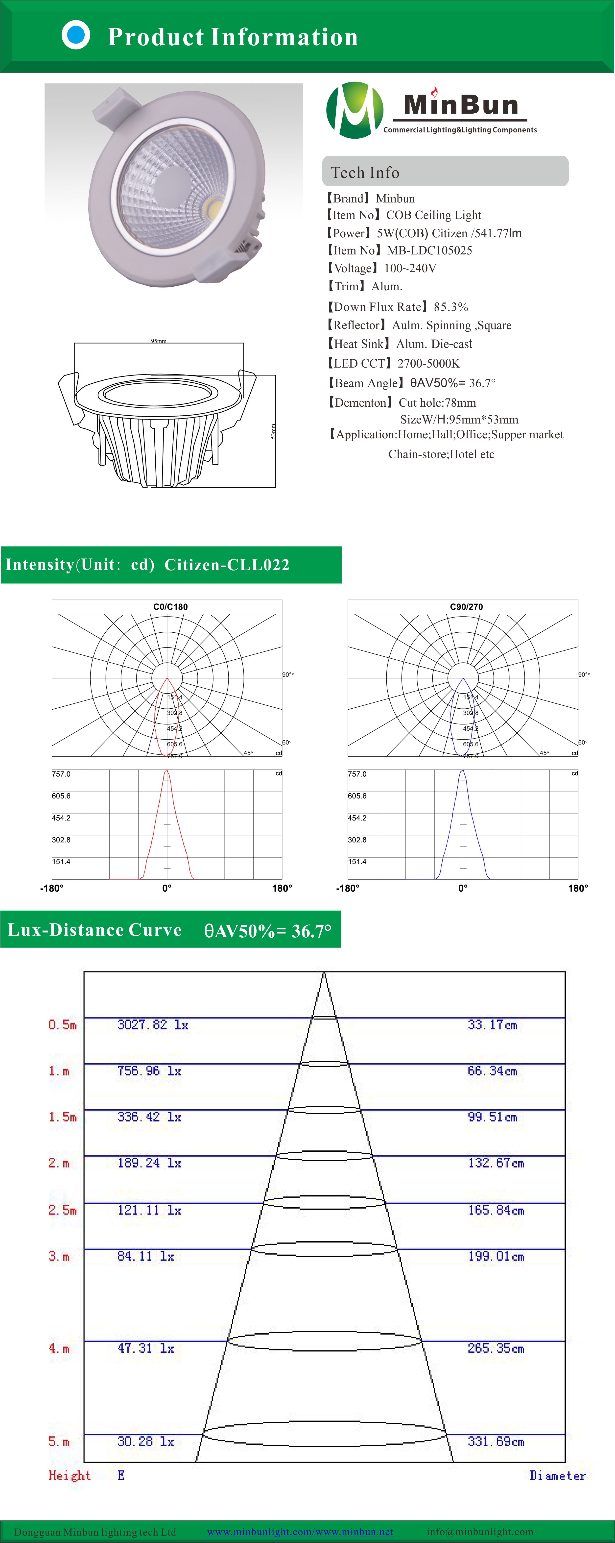 | Power : | 5W(COB) Citizen CLL022/ 547.11 lm | Sealing : | |